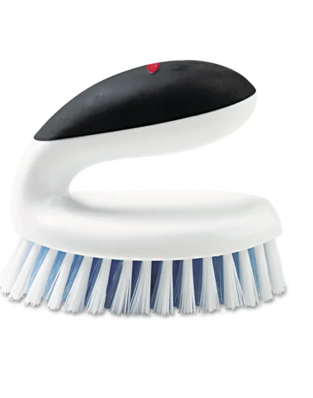 OXO Good Grips Household Scrub Brush, White/Blue Nylon/Polypropylene Bristles, 5" Brush, 5" Black/White Handle