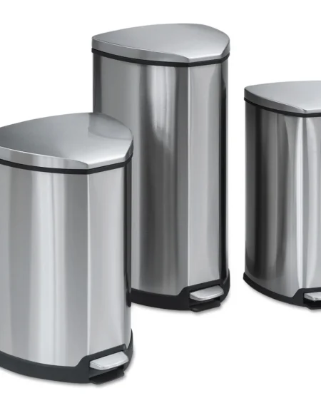Safco® Step-On Receptacle, 4 gal, Stainless Steel, Chrome/Black