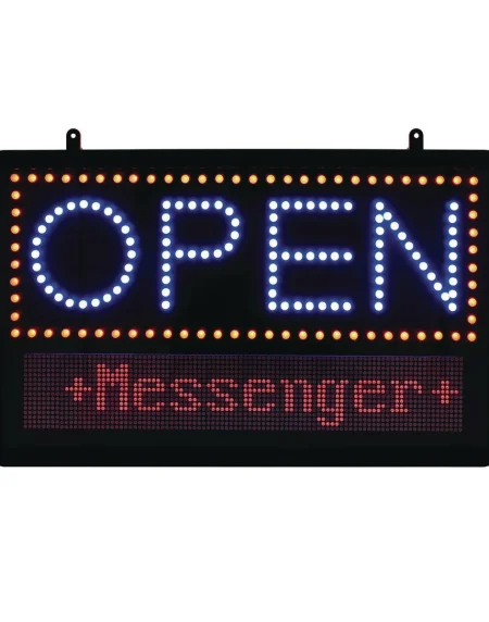 Alpine Industries LED Programmable Message Board Open Sign, 22 x 13, Black Frame, Blue/Red Graphics